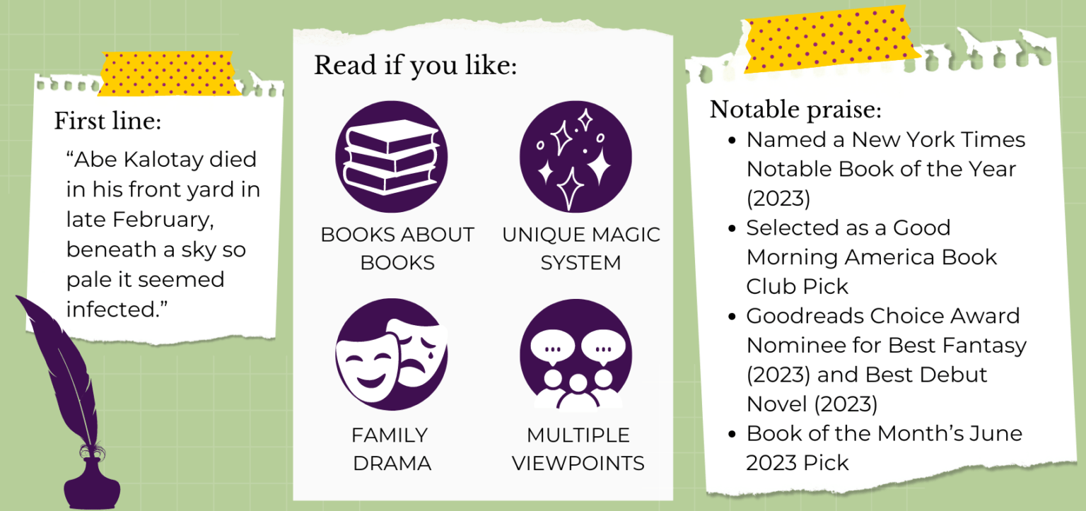 For generations, the Kalotay family has guarded a collection of ancient and rare books. Books that let a person walk through walls or manipulate the elements–books of magic that half-sisters Joanna and Esther have been raised to revere and protect.