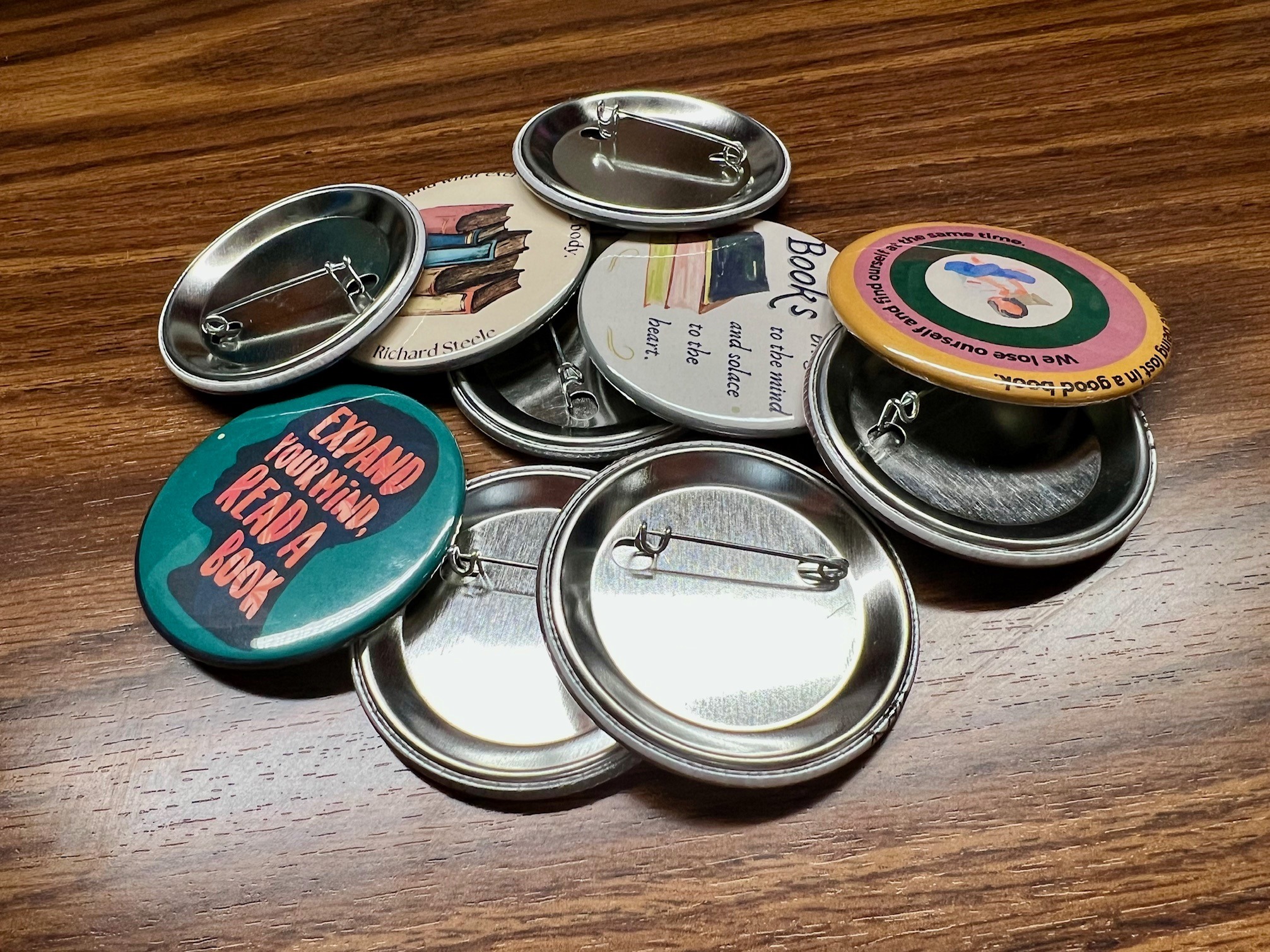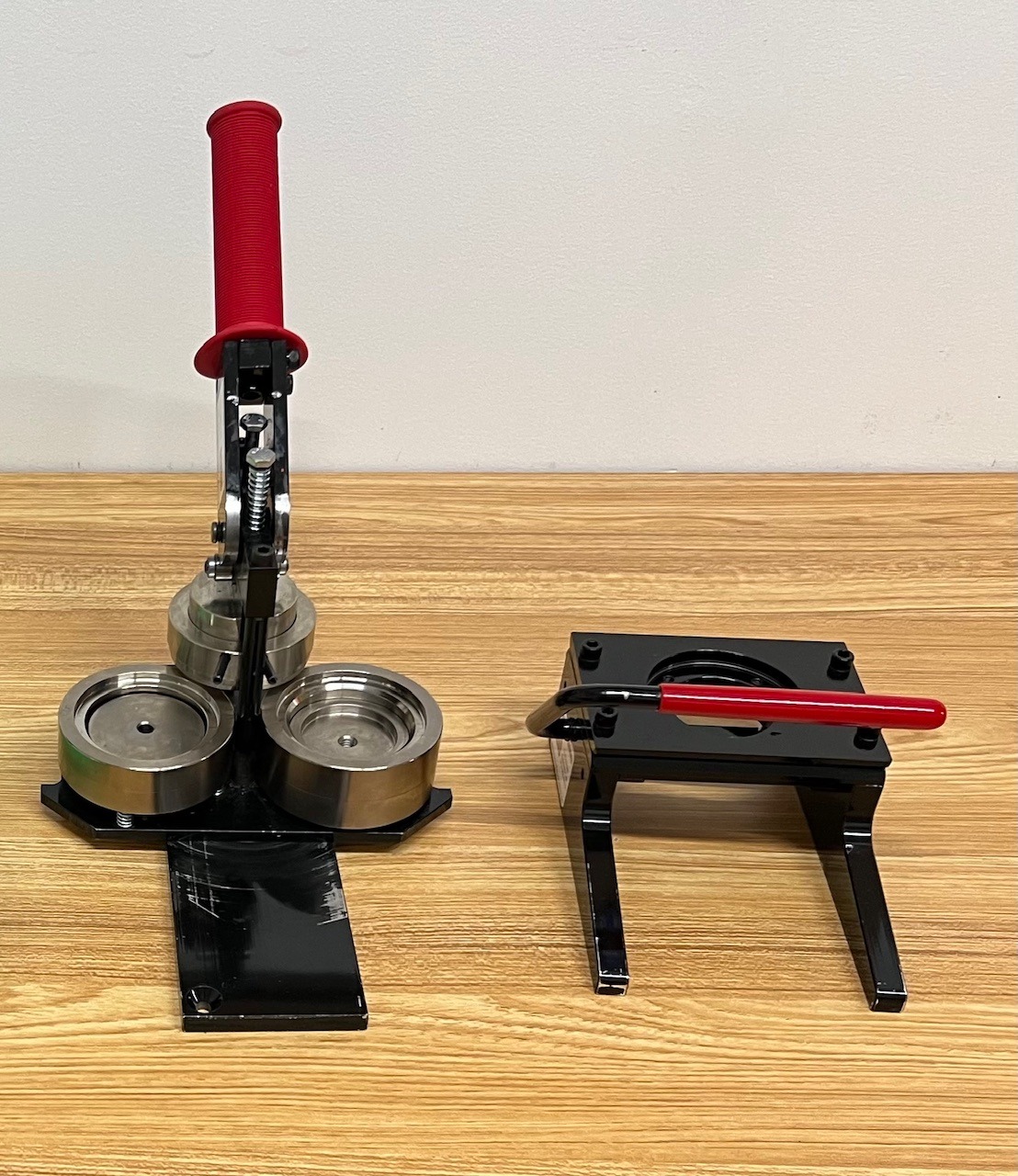 We have three button makers available to create three different sizes of buttons: small (1”), medium (2.25”), and large (3”). Our kits allow you to create a custom button, magnet or keychain.