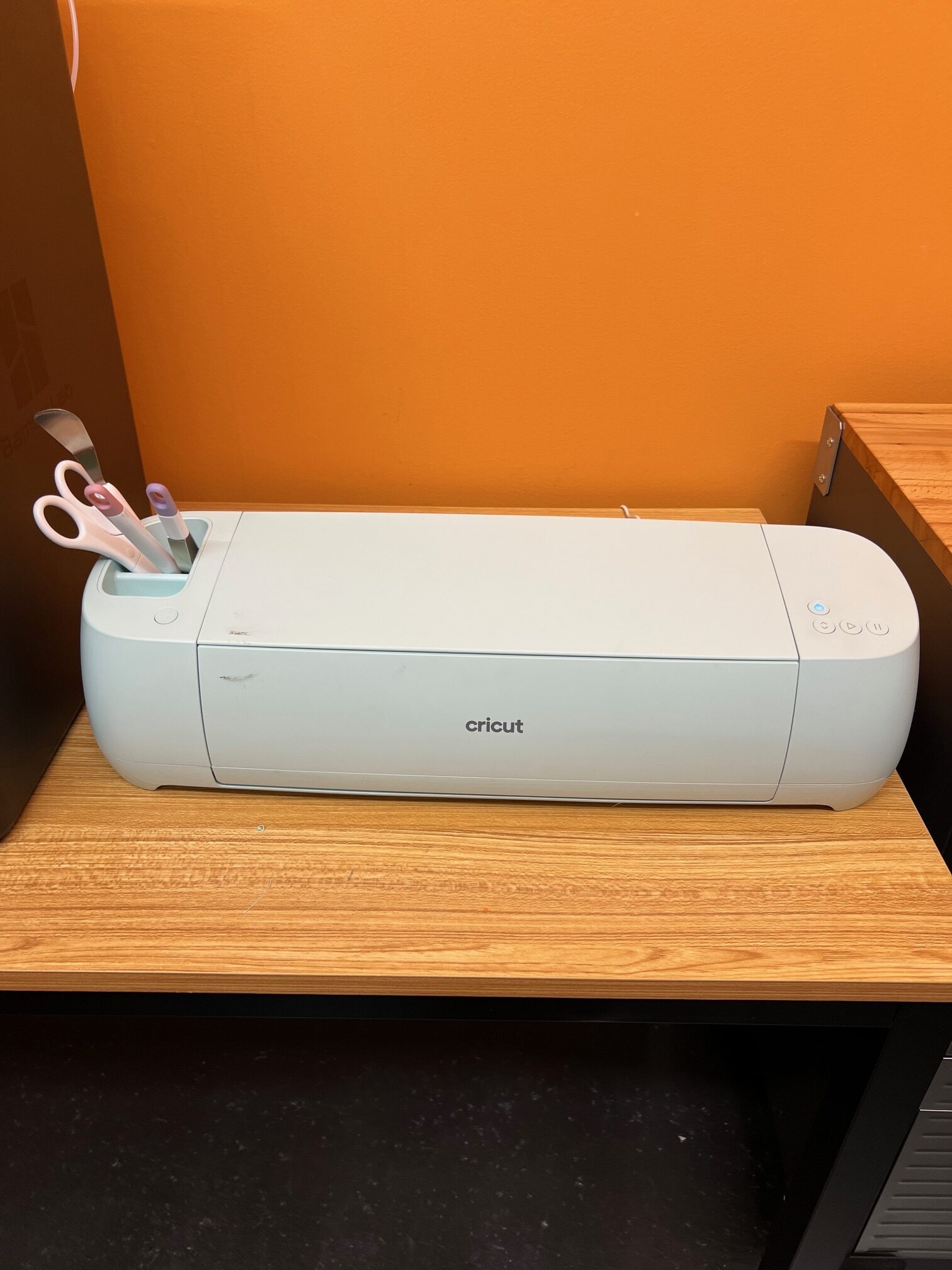 Our Cricut Explore 3 is perfect for all your paper cutting needs!  Whether you are decorating a bulletin board, creating a hand-crafted greeting card, or looking to cut any design quickly and easily, the Cricut is a great tool to consider.