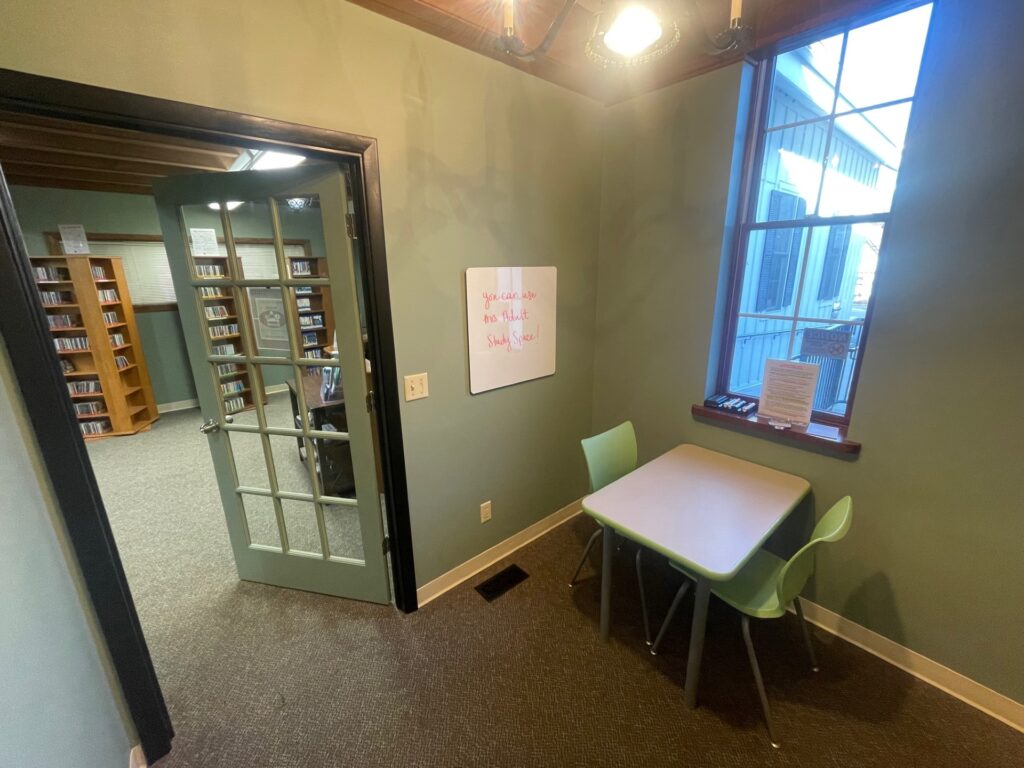 Our adult study room is located on the first floor next to the Adult Services Desk