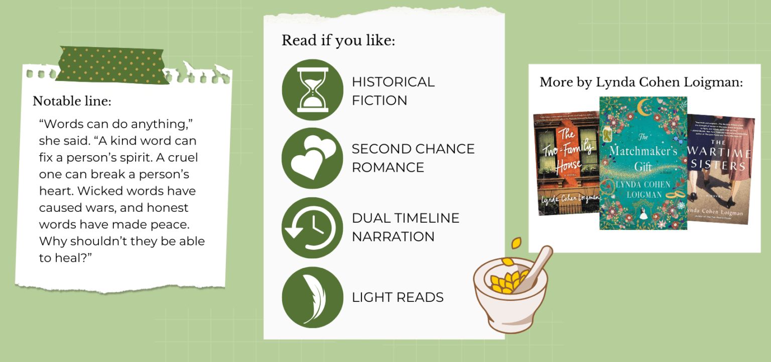 As a teenager growing up in 1920’s Brooklyn, Augusta’s role model was her father, Solomon Stern, the trusted owner of the local pharmacy and the neighborhood expert on every ailment. But when Augusta’s mother dies and Great Aunt Esther moves in, Augusta can’t help but be drawn to Esther’s curious methods. As a healer herself, Esther offers Solomon’s customers her own advice—unconventional remedies ranging from homemade chicken soup to a mysterious array of powders and potions.